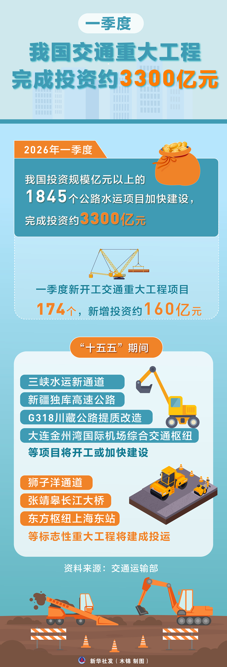 一季度我国交通重大工程完成投资约3300亿元